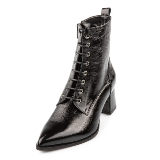 556-01 BOOTIE,Γυναικείο μυτερό μποτάκι χαμηλό από γνήσιο δέρμα λουστρίνι(εξωτερικά) εξαιρετικής ποιότητας.Υφασμάτινη επένδυση εσωτερικά(ECO-WARM) και μαλακό(αφρώδες) πατάκι εσωτερικά.Σόλα βάρδουλο για πιο άνετο περπάτημα και χοντρό τακούνι ντυμένο (5,5 εκ).