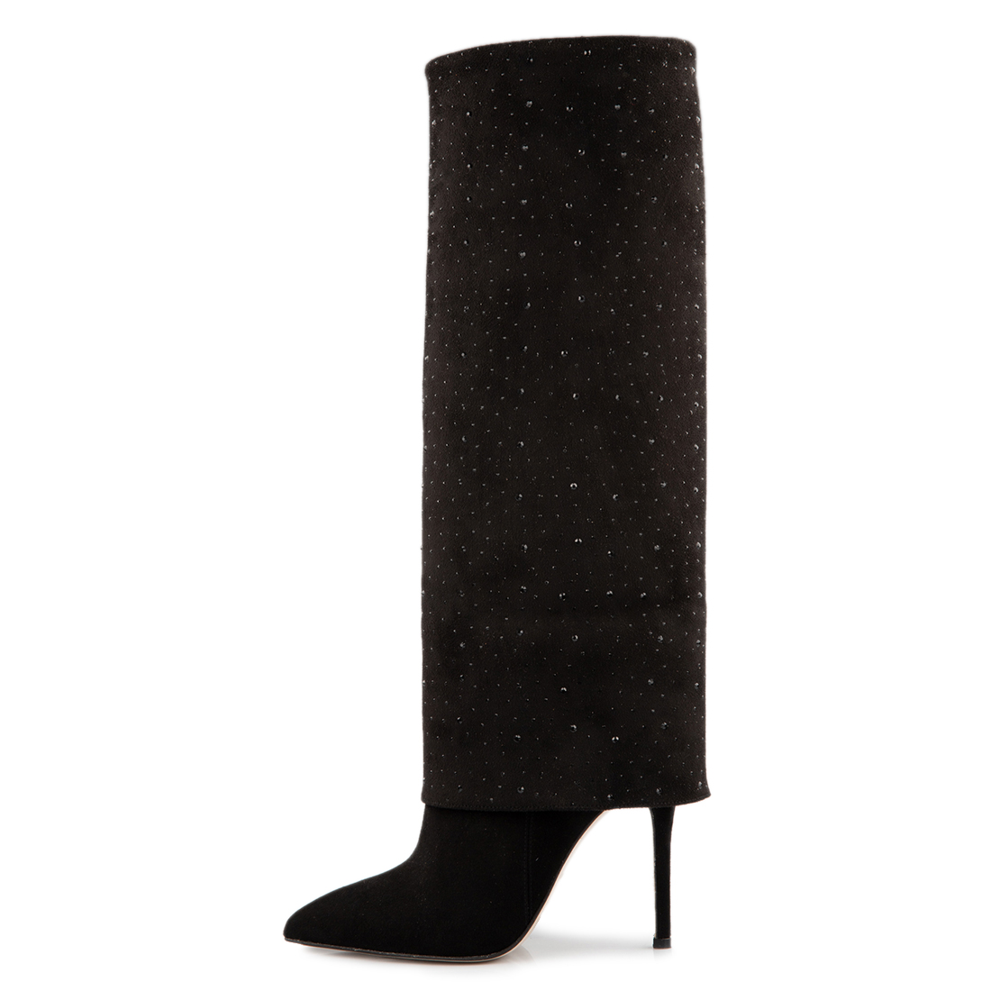 1051-45 BOOTS, Γυναικεία μπότα μυτερή με στρας από γνήσιο δέρμα καστόρι (εξωτερικά) εξαιρετικής ποιότητας και εσωτερικό φερμουάρ.Υφασμάτινη επένδυση εσωτερικά (ECO-WARM) και μαλακό (αφρώδες) πατάκι εσωτερικά.Τακούνι λεπτό ύψους (10,5 εκ) και κανονική εφαρμογή.