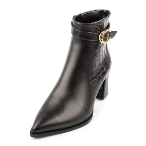 556-02 BOOTIE,Γυναικείο μυτερό μποτάκι χαμηλό από γνήσιο δέρμασε συνδυασμό με κροκό δέρμα(εξωτερικά) εξαιρετικής ποιότητας.Υφασμάτινη επένδυση εσωτερικά(ECO-WARM) και μαλακό(αφρώδες) πατάκι εσωτερικά.Σόλα βάρδουλο για πιο άνετο περπάτημα και χοντρό τακούνι ντυμένο (5,5 εκ).