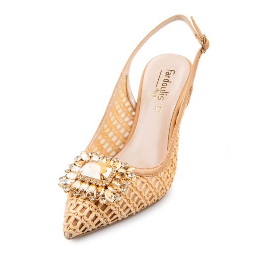 749-56 PUMPS,Γυναικεία γόβα σανέλ μύτερη από φιλτιρέ πλεχτό με δέρμα(άριστης ποιότητας) εξωτερικά και δερμάτινο πάτο εσωτερικά, με λεπτό(καμπάνα) τακούνι ντυμένο(ύψος 8εκ) και κανονική εφαρμογή.