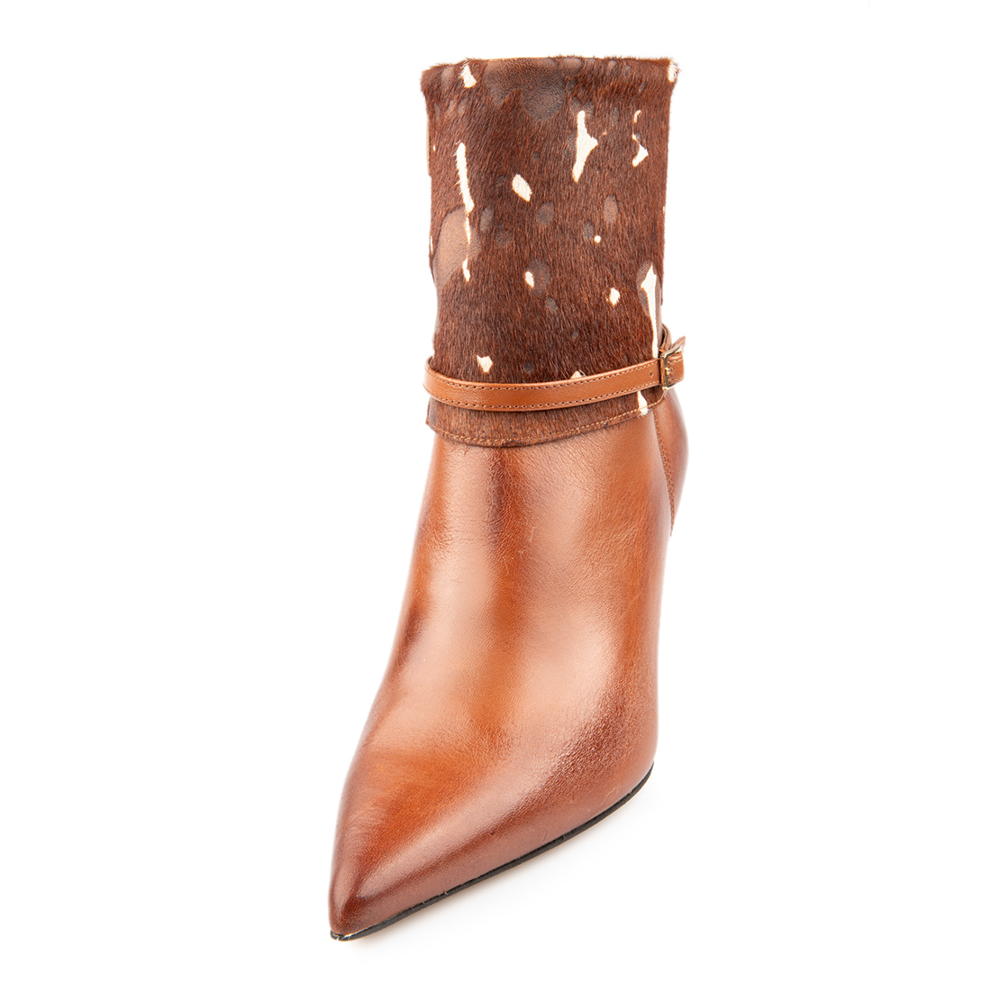 7712-06 BOOTIES, Γυναικείο μποτάκι μυτερό από γνήσιο δέρμα και δέρμα άνιμαλ (εξωτερικά) εξαιρετικής ποιότητας. Υφασμάτινη επένδυση εσωτερικά(ECO-WARM) και μαλακό(αφρώδες) πατάκι εσωτερικά. Τακούνι λεπτό ύψους (7,5 εκ) και κανονική εφαρμογή.