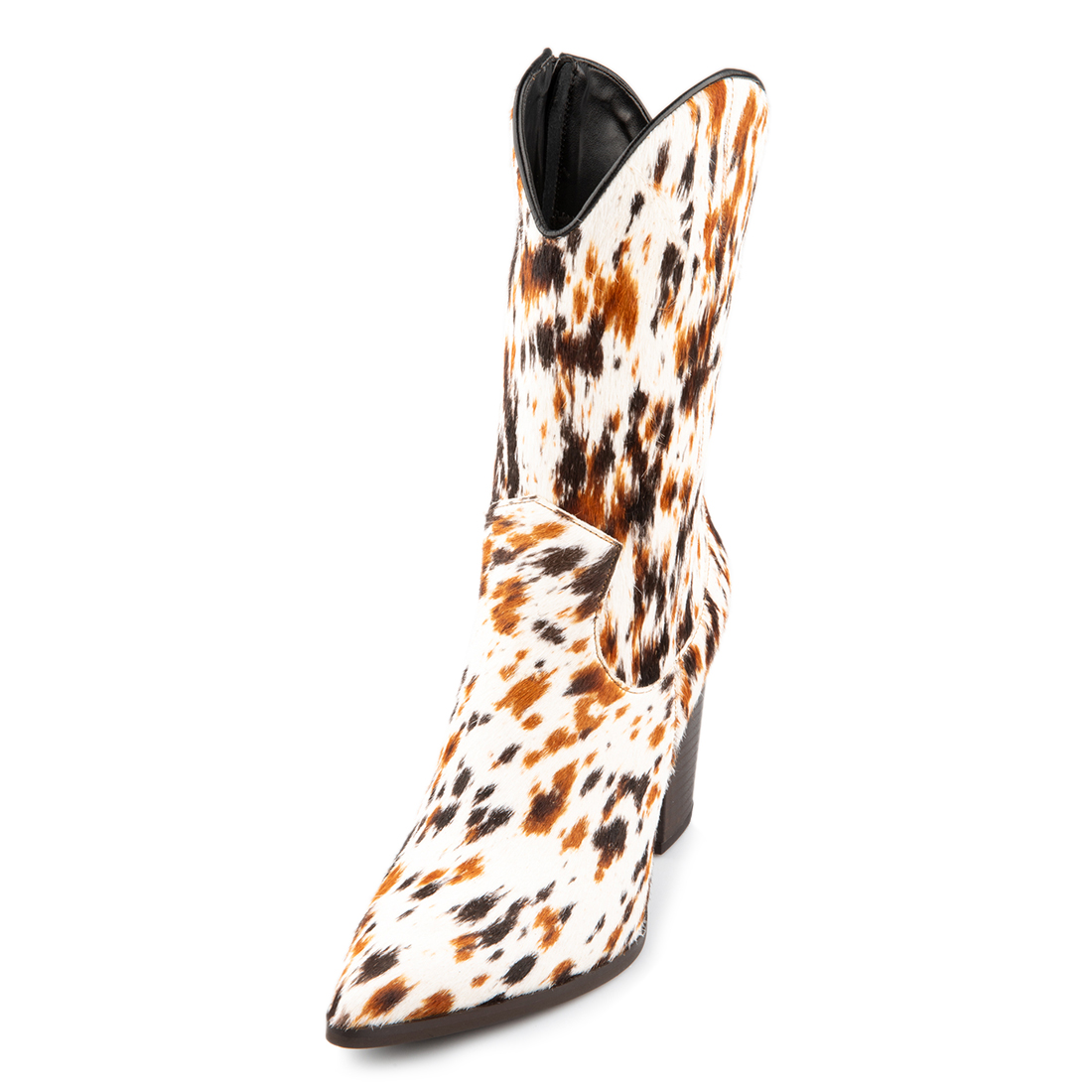 953-08 COWBOY BOOTIES,Γυναικείο μυτερό μποτάκι cowboy από γνήσιο δέρμα άνιμαλ (εξωτερικά) εξαιρετικής ποιότητας,εσωτερικό φερμουάρ.Υφασμάτινη επένδυση εσωτερικά(ECO-WARM) και μαλακό(αφρώδες) πατάκι εσωτερικά.Σόλα βάρδουλο για πιο άνετο περπάτημα με χοντρό τακούνι (9 εκ).